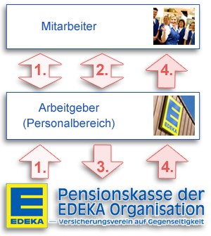 Im ersten Schritt treten Sie mit Ihrem Arbeitgeber (Personalbereich) in Kontakt. Informieren Sie sich, welche Möglichkeiten Ihr Arbeitgeber anbietet, eine betriebliche Altersversorgung über die Pensionskasse der EDEKA durchzuführen. Die entsprechenden Anmeldeformulare erhält Ihr Arbeitgeber von uns ausgehändigt.